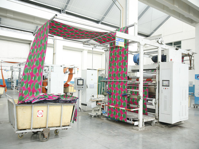 華紡股份有限公司花布公司是公司印染主導產(chǎn)業(yè)板塊的重要組成部分,集印花面料的設(shè)計、印制、后整及銷售于一體,擁有進口齊瑪20套色圓網(wǎng)印花機,由高效配套的水洗機、退漿機、雙面印花機、絲光機、蒸化機、拉幅機等裝備組成13條功能先進的印花生產(chǎn)線,輔以2條先進的自動調(diào)漿系統(tǒng);采用CAD滑行設(shè)計處理系統(tǒng)和先進的蘭光制網(wǎng)機、噴蠟制網(wǎng)機等,可根據(jù)客戶及市場需求設(shè)計花型,并自主研發(fā)引領(lǐng)時尚潮流的新花型。年產(chǎn)能力12000萬米,產(chǎn)品綜合出口率達80%以上,其中純棉真蠟印花布、純棉仿蠟印花布等100%外銷出口?;ú脊旧a(chǎn)工藝先進、產(chǎn)品質(zhì)量穩(wěn)定,技術(shù)含量高、市場份額大,長期暢銷非洲等數(shù)十個國家和地區(qū),其產(chǎn)品在非洲市場占有重要位置。