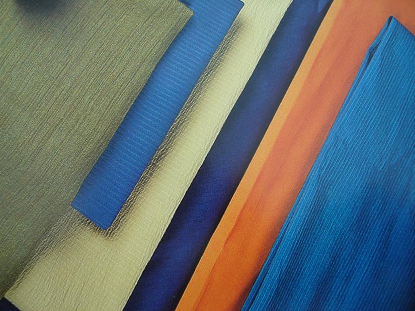 我公司與英威達(dá)公司及其他世界著名公司共同開(kāi)發(fā)的新型纖維流行面料,有吸濕排汗Coolmax纖維面料、Coolplus纖維面料 、彈力T400、PBT、PTT系列面料、可降解